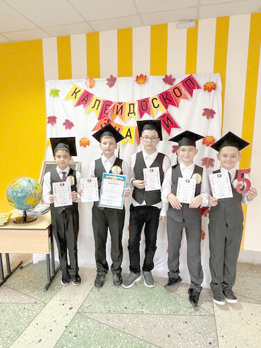 Нашу школу представляла команда "Пять седьмых": Х. Вадим, К. Лев, Т. Степан (4г класс), Г. Егор (4в класс), П. Александр (4б класс).